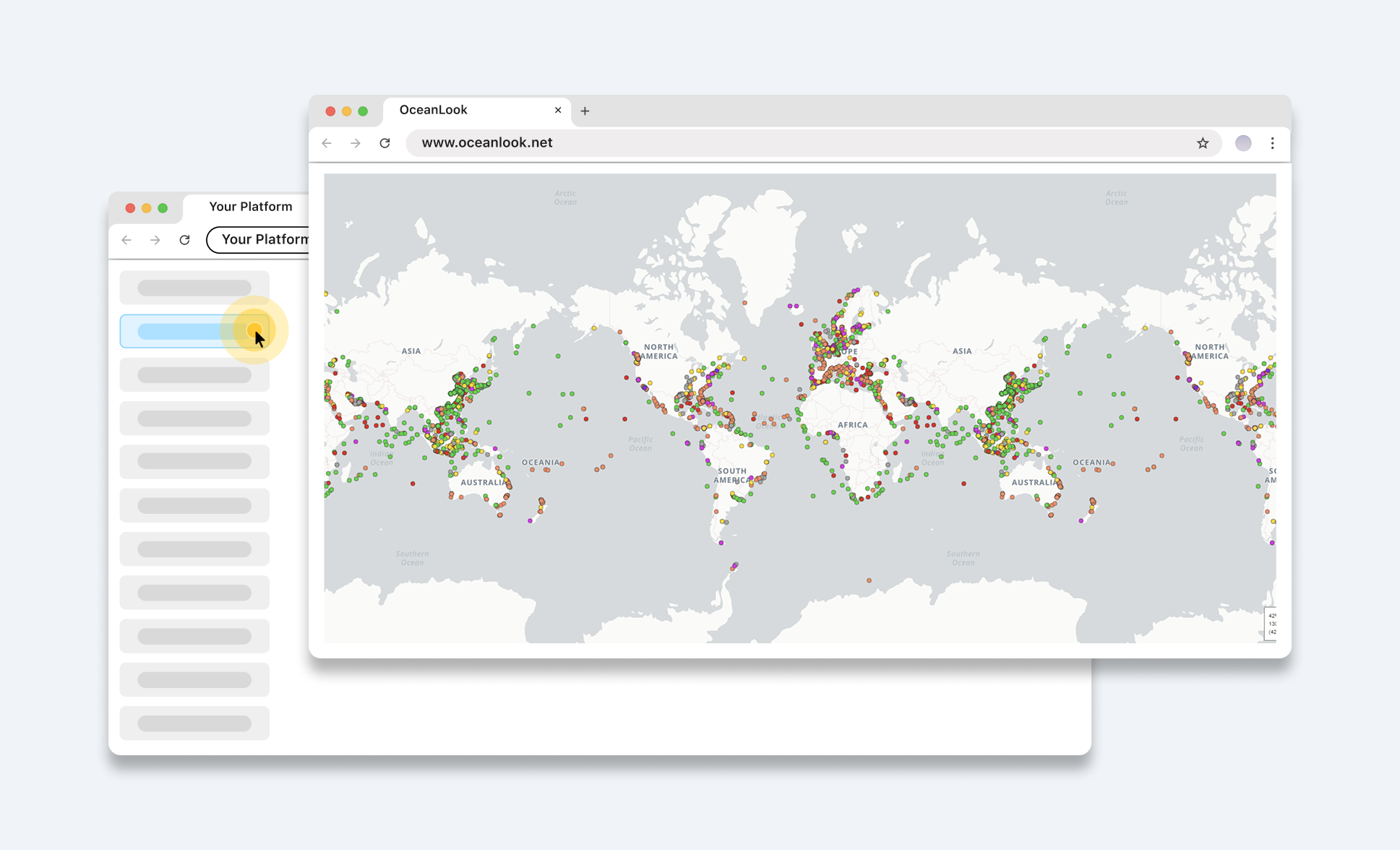 The map appears in a separate popup whenever users select information supplied by the client.